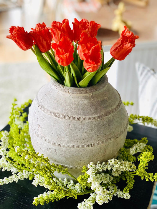 12.5" BASKET WEAVE CEMENT VASE