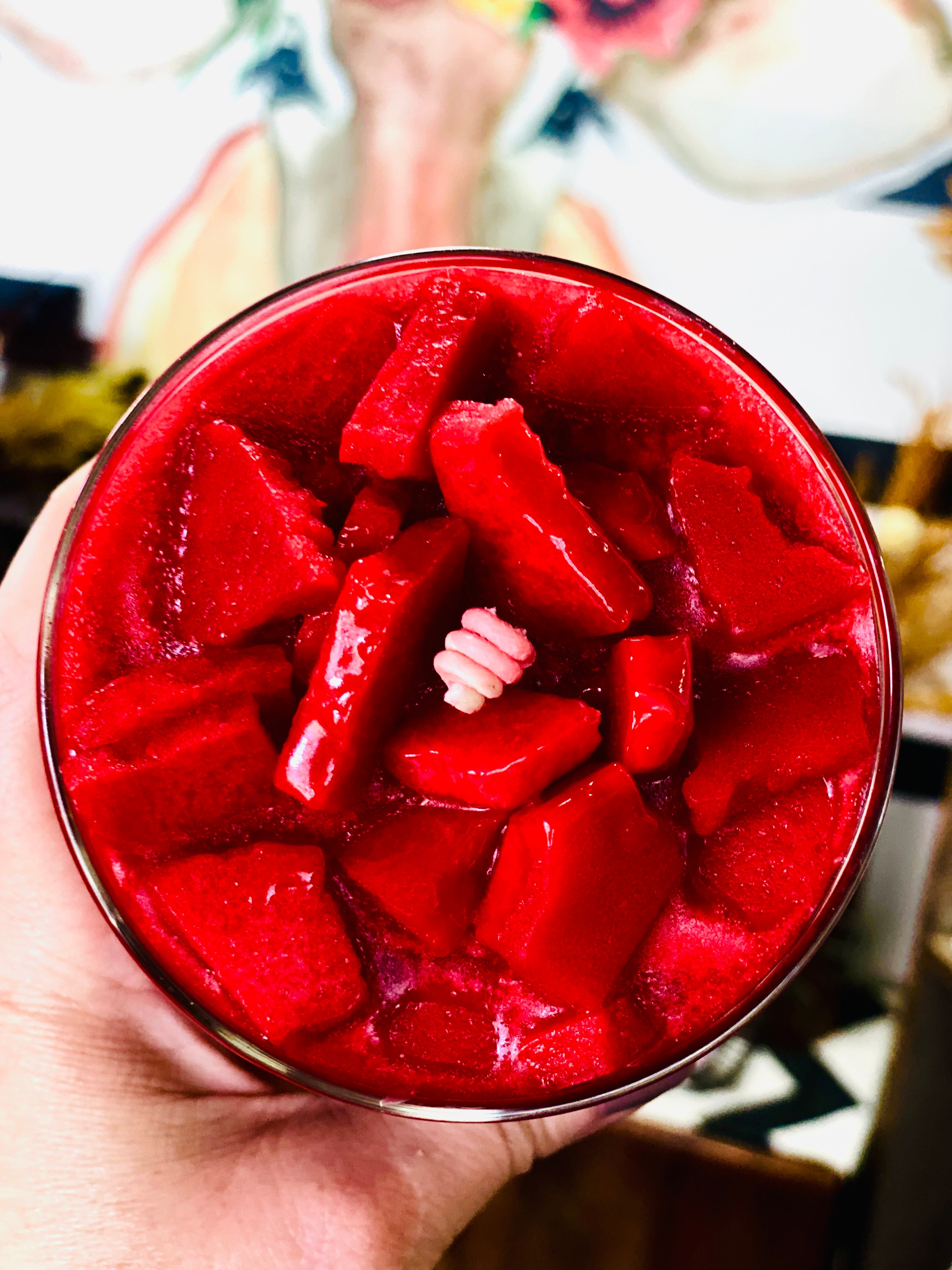 Made with: SOY WAX, FOOD GRADE PARAFFIN WAX, PREMIUM SCENT OILS & COTTON CORE WICKS