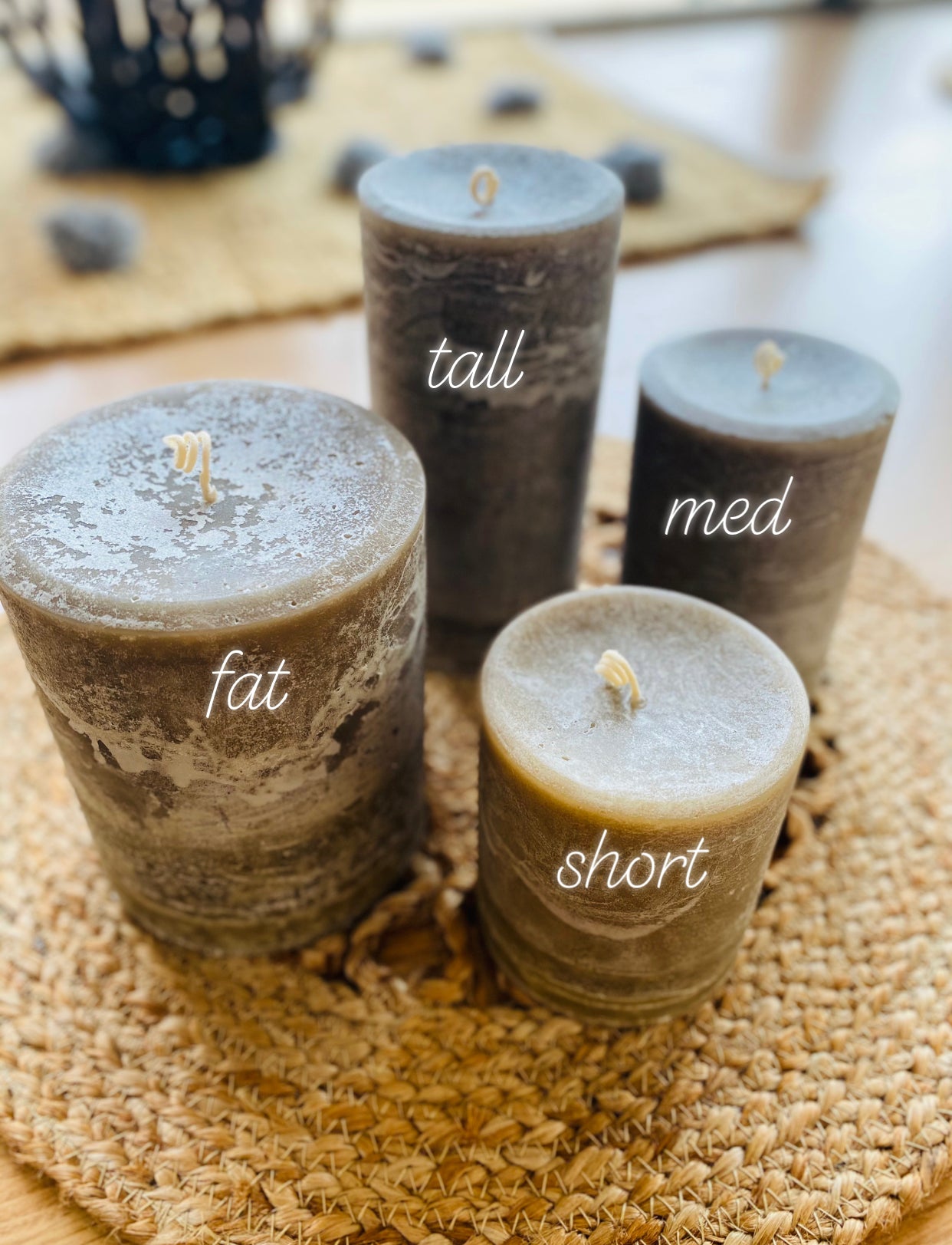 Our pillar candles have a beautiful mottled appearance and are heavily scented!