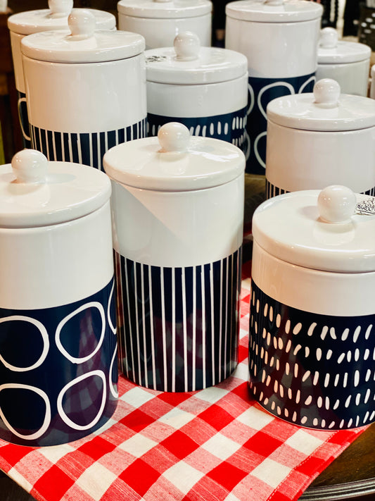9.5" WHT/BLUE STRIPE CANISTER