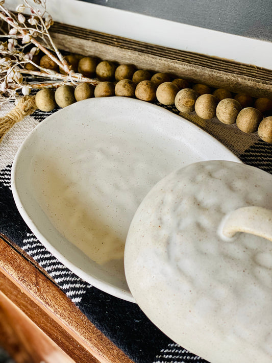 RUSTIC STONEWARE LIDDED BUTTER DISH