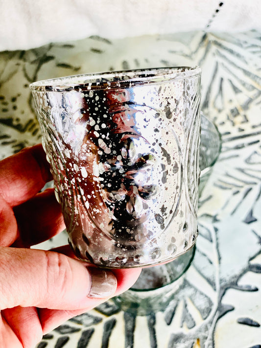 EMBOSSED SILVER FLECKED VOTIVE CUP | 3.12" H