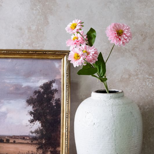 Featuring 3 large blooms and 2 smaller accent flowers, this 23.6" pink dahlia stem brings lush, garden-fresh beauty to any arrangement.