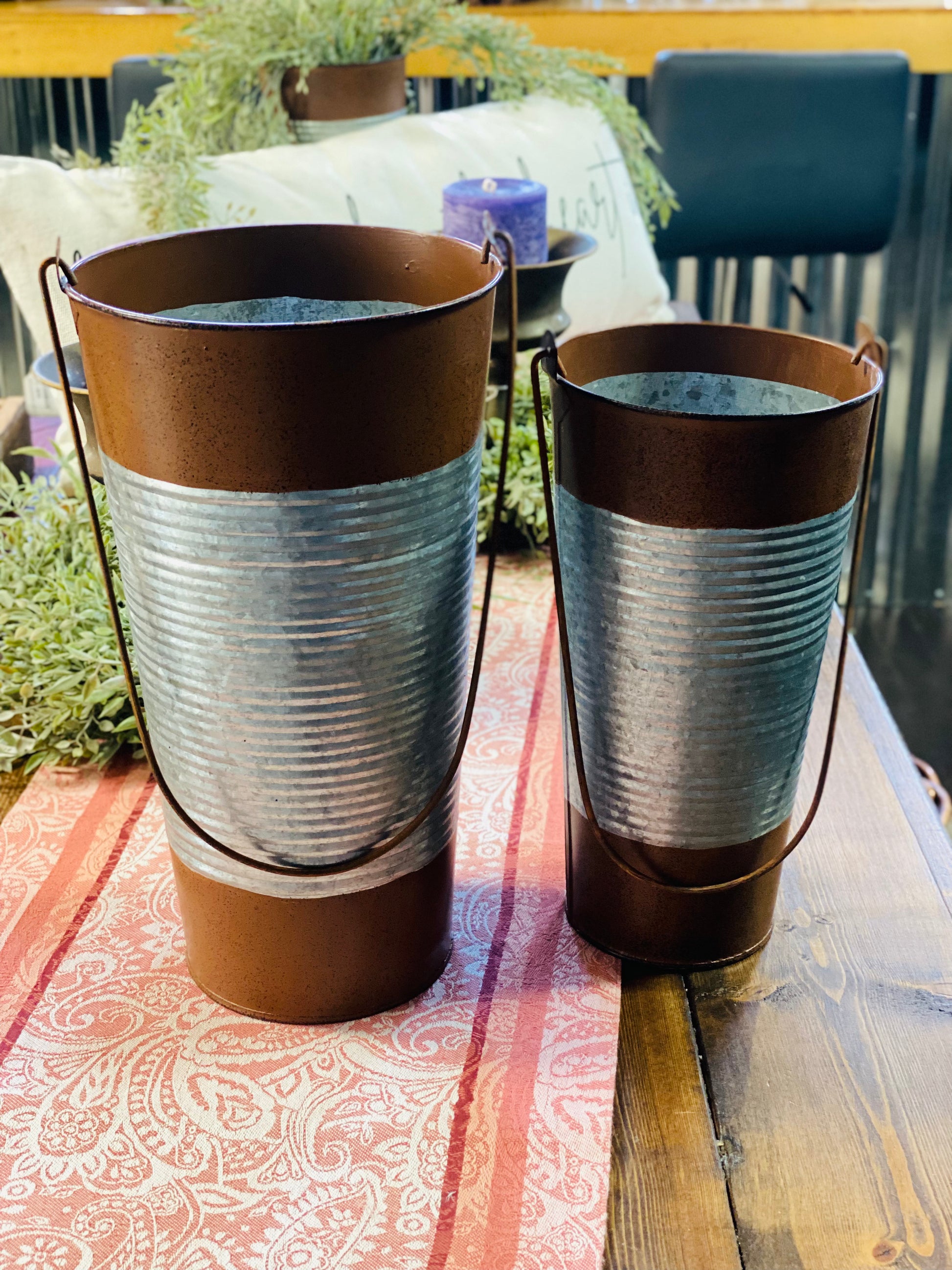CORRUGATED METAL PAIL W/HANDLE - 2 SIZES