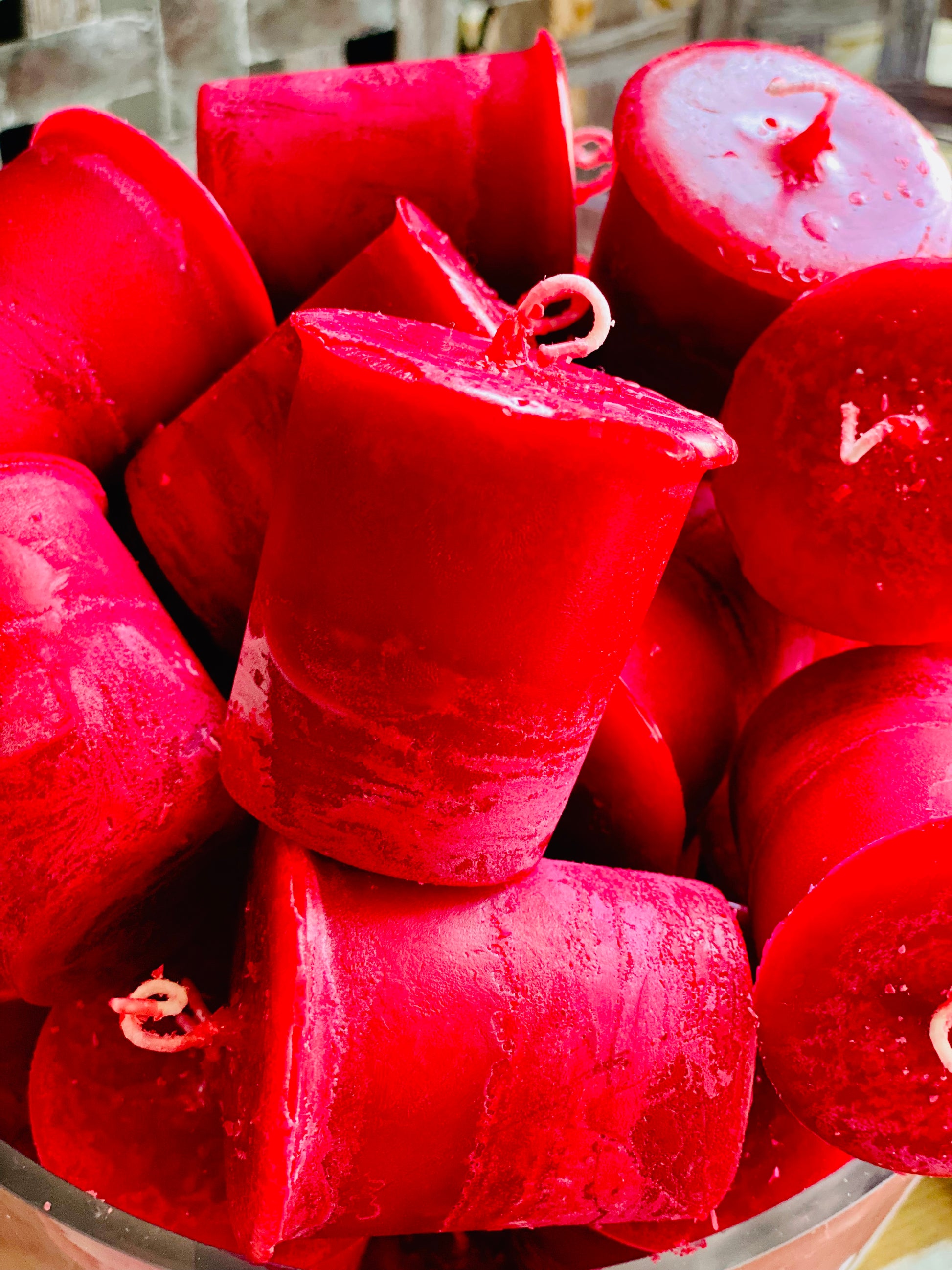 2oz votive - burn time 15-20 hrs when burned in a tight fitting votive cup!