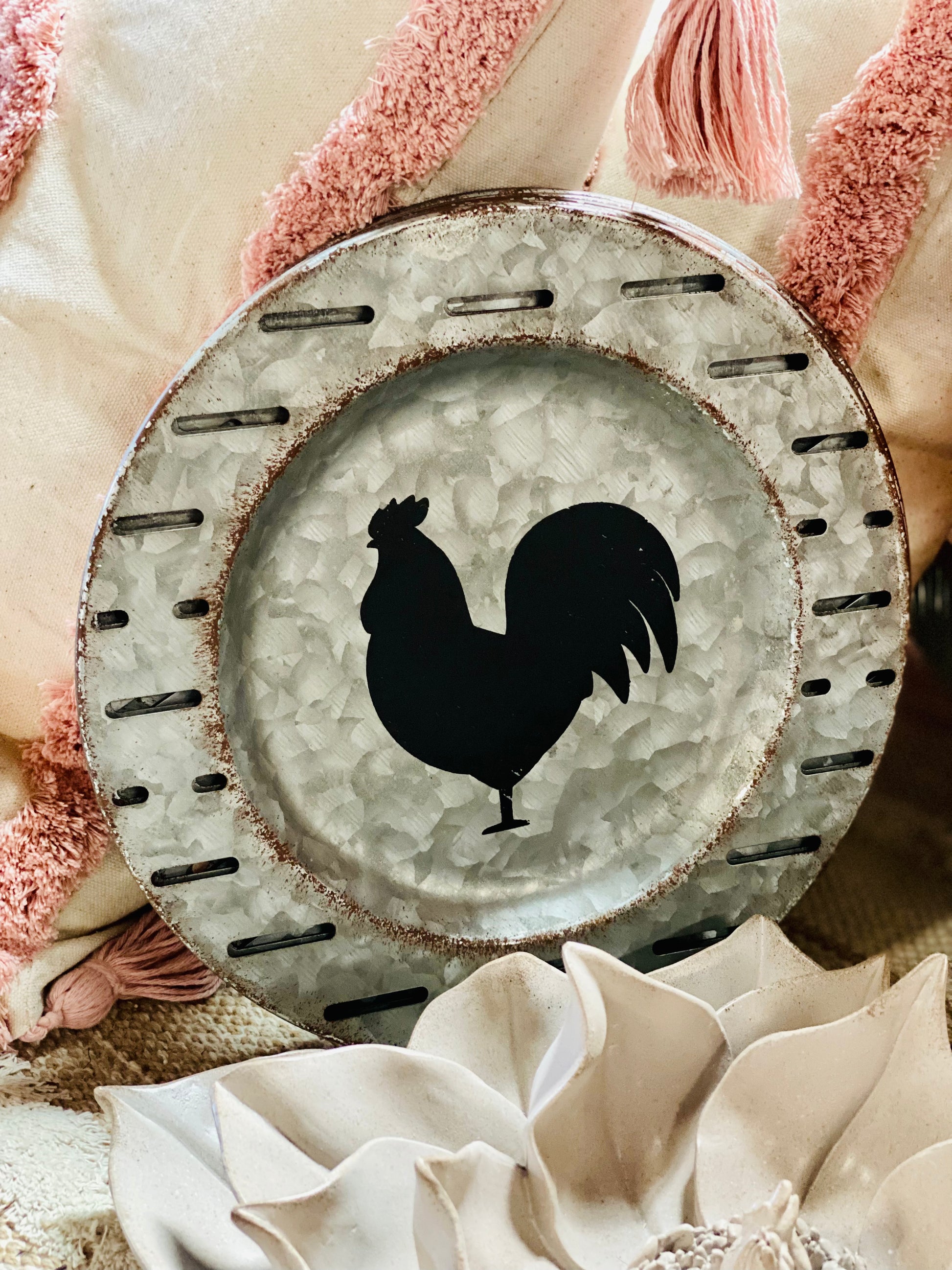 FARMHOUSE GALVANIZED ROOSTER PLATE