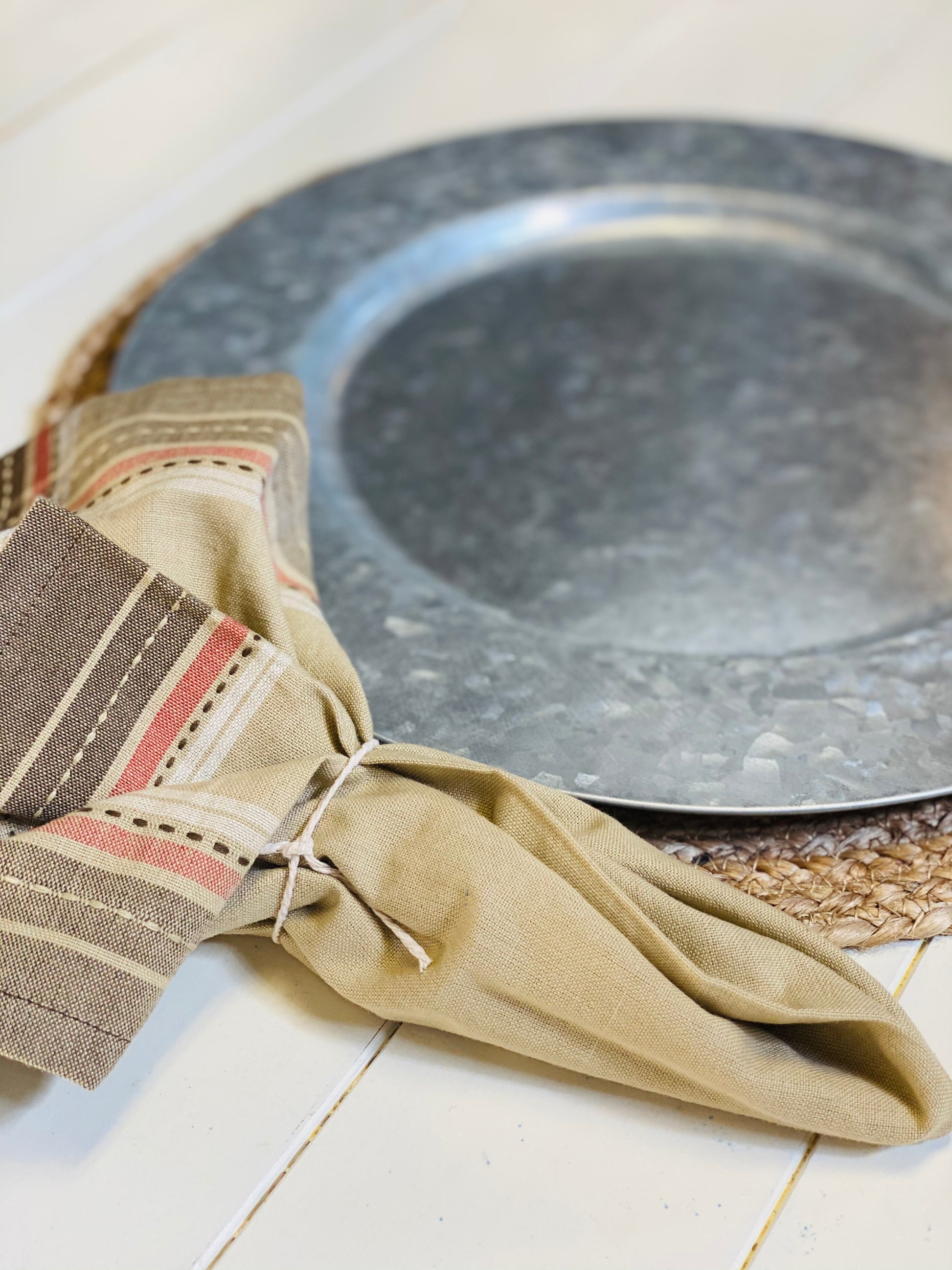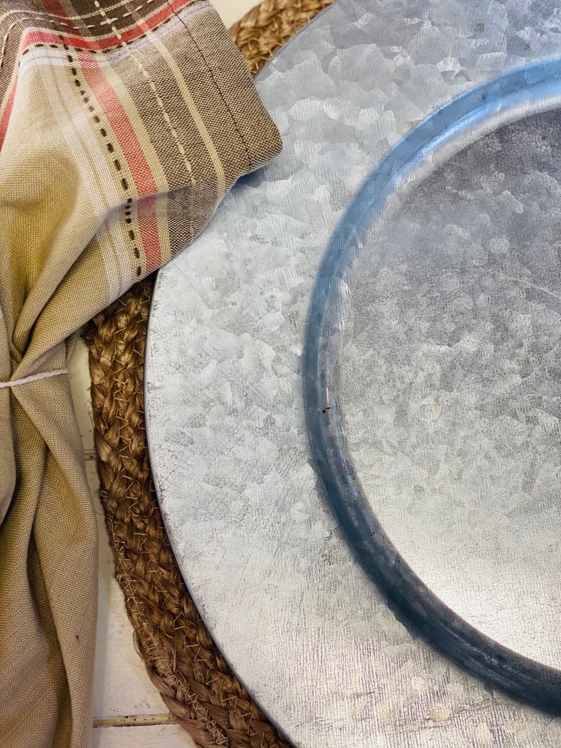 Add a rustic farmhouse touch to your table with the Galvanized Metal Charger Plate!