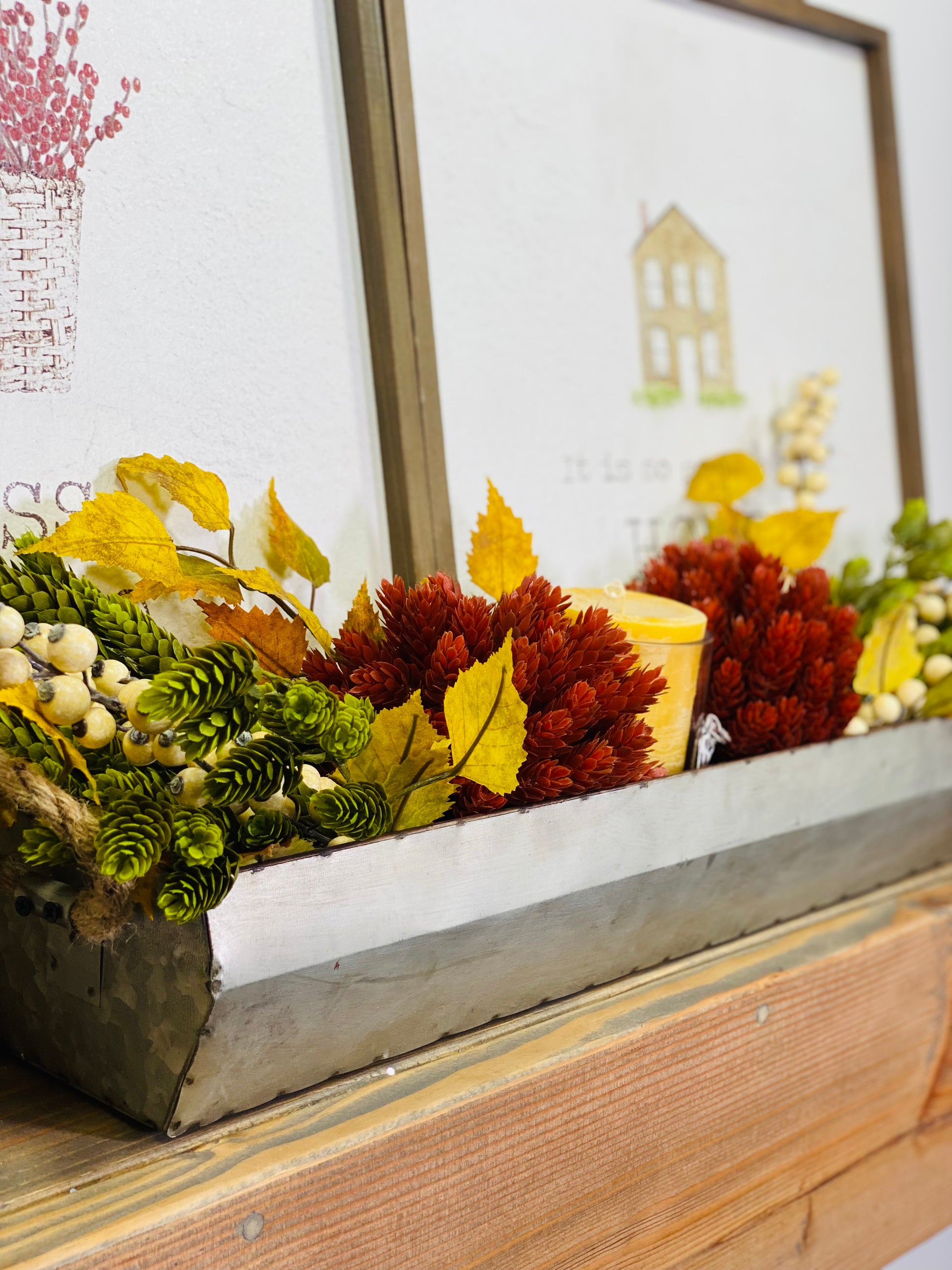 A great piece for all your seasonal decor! Fill with flowers, pumpkins or candles for a easy, but impressive display!
