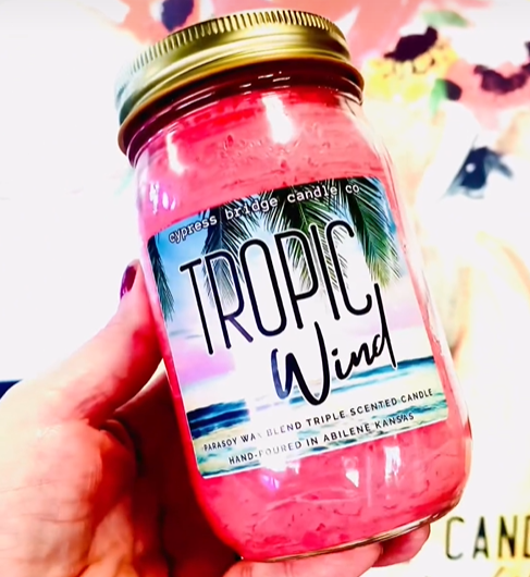 Experience a tropical paradise with hints of pineapple, passion fruit, peach, citrus, and juicy black cherries in this 12oz+ Mason Jar Candle.